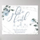 Dusty Blue Floral pour correspondre à votre thème mariage, Guidez tout le monde à la photo Booth pour de superbes photos de l'événement! Roses, feuilles et baies d'aquarelle dans un bleu poussiéreux moderne entourent un cadre géométrique de terrarium argenté avec de la végétation sauge. Personnaliser texte, style de police, couleur et taille. OEuvre originale créée pour BarefootBride™ par © WhimsicalArtwork™ - Il s'agit d'une suite de papier à lettres Mariage complète avec papier à lettres mariage, baby shower et autres articles de papeterie d'événements correspondants.