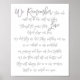 Signe qui dit "Nous nous souvenons de ceux qui ne pouvaient pas être ici avec nous aujourd'hui. Au fil des ans, leur Amour a contribué à façonner nos vies. Nous sentons qu'ils sont ici aujourd'hui, en nous surveillant, alors que nous nous engageons dans notre merveilleux nouveau voyage et que nous commençons nos vies ensemble. Nous les aimons de tous nos coeurs, et ils vivront toujours dans nos souvenirs. Jusqu'à ce que nous soyons à nouveau unis..."