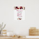 L'Affiche de bienvenue de Fête des mariées Florale Rouge Bourgogne est une façon magnifique et unique de décorer votre douche nuptiale. Avec son design floral élégant dans les tons de rouge bordeaux, ce panneau ajoutera une touche de classe à votre événement. Il est parfait pour accueillir vos invités pour que vos invités se sentent spéciaux. Pour afficher cette affiche, vous pouvez monter l'affiche sur une planche en mousse ou une planche en bois pour l'afficher sur un chevalet ou accroché sur un mur. Et pour votre commodité, il est également disponible en téléchargement numérique pour l'auto-impression.