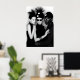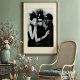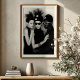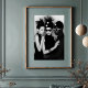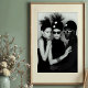 Immergez-vous dans l'harmonie saisissante de cette impression d'art noir et blanc, un portrait captivant de la mode avant-gardiste et de l'unité artistique. Cette image puissante présente trois figures méticuleusement stylisées, créant un tableau fascinant de l'élégance moderne. La femme centrale, avec ses mystérieuses lunettes de soleil foncées et son unique casquette noir orné de points blancs et de pointes rayonnantes, dégage un air de sophistication cool. Elle est flanquée d'une femme aux yeux fermés dans la contemplation sereine, qui présente une coiffure épurée et une tenue noire minimaliste, et d'un homme à la peau foncée distincte et aux lunettes de soleil rondes blanches emblématiques, contribuant au contraste audacieux de l'ensemble. Leurs mains s'entrelacent, suggérant un lien puissant et une synergie dans leur vision stylistique partagée. Rendu en monochrome à contraste élevé sur fond gris subtil, chaque détail complexe, des coiffures sculpturales au bracelet texturé, est mis en évidence avec une précision graphique. Parfait pour les espaces de vie modernes, les studios de mode, ou tout autre décor à la recherche d'une touche d'élégance pointue, d'un style unique et d'un puissant narratif visuel.