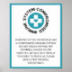 Signal d'avertissement à mettre à votre porte pour avertir les visiteurs que vous n'ouvrirez pas s'ils frappent ou sonnent la porte parce que quelqu'un dans votre foyer a un système immunitaire compromis. L'affiche d'avertissement présente une croix blanche au coeur bleu.