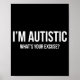 Poster T-shirt Autisme Sarcastique - Je suis Autiste, Qu'