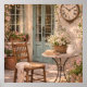 Apportez la chaleur et la romance de la campagne française chez vous avec cette sérénité de la cour représentée sur cette toile. Une table en pierre rustique dressée avec un livre ouvert, un café frais et de délicates fleurs est assise à côté d'une charmante chaise en bois drapée d'une douce couverture en lin. La lumière du soleil brille à travers des portes françaises vintage ornées d'une couronne de lavande, tandis que des roses grimpantes et une antique horloge pendante complètent la scène de jardin tranquille. Parfait pour les cuisines de ferme, les coins de lecture cosy, les intérieurs de cottage et la décoration de style campagne française.