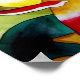 avec un design original de la peinture aquarelle de Sacha Grossel de rose de thé hybride rouge et jaune contre arrière - plan vert. Ce design d'art lumineux et contemporain est d'un grand design macro-floral au foyer rapproché d'un motif botanique dans un style lumineux, vif et coloré pour les amateurs de fleurs et de roses partout.