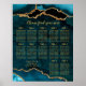 Poster Teal Blue and Gold Agate Wedding Seating Chart