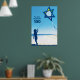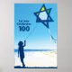 La mer, la plage et la jeunesse sont des images emblématiques de l'État d'Israël, toujours jeune. Cette affiche incorpore les trois comme un jeune silhouette vole une étoile de cerf-volant en forme de David sur la plage de Tel Aviv. Le texte dit Tel Aviv Célèbre 100.