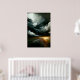 Un temps orageux arrive ! Des nuages sombres et menaçants sont suspendus sur une route, mais il y a un coin de soleil. Les touches de peinture à la fluidité complètent le ton et les paroles de la chanson "Stormy Weather". Grand poster pour n'importe quel club de jazz en sous-sol, grotte homme ou remise. Une idée cadeau créative pour les amateurs de jazz ou de blues dans votre vie.