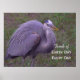 Le Grand Héron Bleu sur la photo originale de cette affiche montre son plumage, gonflant ses plumes pour se faire paraître plus grand, pour faire savoir aux autres oiseaux que c'est son territoire. Sur la photo, le héron nous regarde, dans sa couleur bleu gris et son visage blanc avec des bandes bleues profondes de chaque côté. Son long bec jaune se pointe vers l'avant et son long cou incurvé est recouvert contre son corps. L'arrière - plan des herbes est dans les tons de terre bouchée avec des bouts de vert partout. Il y a un texte blanc sur l'affiche dans le coin inférieur droit qui dit "Pensez au Jour des terres chaque jour". Cela peut être modifié ou supprimé si vous le souhaitez.