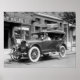 Essai de perforation des pneus des années 1920. Lee Tire Company test avec voiture sur des lits de clous, 1922. Belle vue avec panneaux publicitaires avant du magasin.
