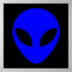 Alien en forme de tête en bleu clair contre noir.