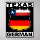 Design allemand du Texas, dans le style d'un panneau de route cool américain. Le texte Texas German est en haut et en bas, avec le drapeau de l'Etat du Texas et le drapeau de l'Allemagne à l'intérieur du panneau de route. Idéal pour les Texans d'origine allemande, et pour les anciens dans l'Etat Lone Star.