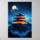 Experience the breathtaking magic of an ancient Chinese palace, illuminated against a deep, star-strewn night sky. Perched high on a misty mountain peak, this magnificent tiered pagoda glows with a warm, golden light beneath a vast, luminous full moon. This stunning, atmospheric artwork captures a scene of tranquility and profound fantasy. Perfect for adding a touch of Asian fantasy, mystical architecture, and dramatic night scenery to any room. A truly unforgettable piece for collectors of oriental art and celestial landscapes.