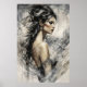 A hypnotic fusion between realism and abstract art. This work captures the serene beauty of a muse wrapped in dynamic strokes suggesting movement and wind. Intricate details in the jewelry and hair contrast with the sketched background, creating a sophisticated and emotionally deep decor piece.