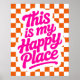 Bring instant joy and vibrant retro charm to any room with this “This Is My Happy Place” Uplifting Quote Checkered Poster. Featuring bold, playful typography set against a colorful pink-and-orange checkered background, this design radiates warmth and positivity. The groovy retro style adds a fun, nostalgic touch; perfect for brightening bedrooms, offices, studios, or any cozy corner that feels like your happy place. Cheerful, modern, and full of feel-good energy, it’s an easy way to add personality and positivity to your wall décor.
