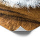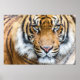 Cette impression présente un gros plan du visage d'un tigre, où le tigre vous regarde directement et ses marques rayées orange et noir sont montrées dans une grande vitalité et détail. Superbe décoration murale pour les amateurs d'animaux et de faune. Photo prise à San Diego, Californie.