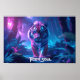 Poster de l'Âme de Tiger avec un beau tigre traversant une forêt magique d'imaginaires... nous avons créé ce design en hommage à la majesté, la grâce et la beauté intemporelle de ces chats sauvages... Couleur du monde ! !