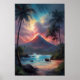 Au milieu de l'étreinte tranquille d'un havre tropical, un géant en pente se dresse. L'île autrefois sereine est aujourd'hui témoin de la majestueuse renaissance de son ancien habitant - un volcan. Des éclats de fumée échappent aux lèvres de la montagne, dansant avec le ciel de la céramique. Le chef-d'oeuvre de la nature se déploie, peint dans des coups d'huile classiques, tandis que l'île respire en admiration.