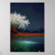 Découvrez la beauté sereine de la nature avec notre affiche d'art numérique "Nightfall at the Lake". Le lac calme reflète la beauté du ciel nocturne tôt, créant une atmosphère paisible et paisible. Sur les rives du lac, un champ de fleurs rouges s'étend au loin vers les majestueuses montagnes, tandis qu'un beau arbre blanc se dresse au bord de l'eau, ajoutant une touche de beauté éthérée à la scène.