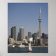 Le port et la ligne d'horizon de Toronto (Ontario) par beau temps, avec un voilier rouge au premier plan. Disponible dans toutes les tailles et surfaces