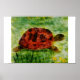 Avec une tortue en profitant d'une promenade dans le jardin. Ce reptile est d'une peinture en verre originale sur un dessous de verre, avec la texture de la peinture encore visible. © Annabel Potter