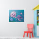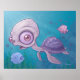 Illustration d'une tortue de mer nageant avec des poissons tropicaux.