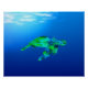 Un tableau numérique d'une tortue de mer en danger dans le bleu de l'océan et des verts doux nageant sous l'eau dans une mer bleue calme.