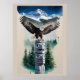 À propos de la "Haida Pride" - Une scène puissante qui met en vedette un fier aigle à tête blanche, animal sacré de la culture des Premières nations, et qui s'élève sur un mât totémique haïda stylisé, avec une magnifique montagne derrière.