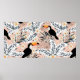Poster Toucans, feuilles de palmiers graphiques, fleurs d