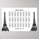 Ce tableau de sièges présente des silhouettes noires de la Tour Eiffel de Paris. Jusqu'à 24 tables avec jusqu'à 12 noms par table, pour un total de 288 noms d'invités. Cliquez sur "personnaliser" pour déplacer les tables, modifier les polices, etc.