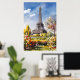 Cette aquarelle capture l'emblématique Tour Eiffel à Paris, en France, entourée d'un vif spectacle de fleurs de printemps en fleurs. La scène évoque un sentiment de romantisme et de tranquillité, avec la tour haute contre un ciel bleu vif.