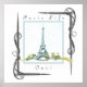 Poster Tour Eiffel Paris Aquarelle Bordure victorienne