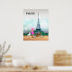 Jeune fille avec un caniche regarde la tour Eiffel.