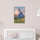 Ceci est l'une d'une série d'affiches célébrant les sommets majestueux de la chaîne Cascade. L'artiste du Nord-Ouest Mitch Frey s'inspire des publicités du parc national des années 1930-1940. Le rendu de chaque forme et de chaque couleur est très soigné. En regardant la palette coordonnée, les touches élégantes et le texte intégré, le spectateur reconnaîtra que c'est bien plus qu'une image produite en série avec des étiquettes interchangeables. Cette scène est un plaisir de voir de près ou de l'autre côté de la pièce.