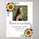 Cette enseigne funéraire présente des tournesols, des roses violettes et des fleurs, du feuillage et des éléments géométriques en or faux. Personnalisez-le avec votre photo et votre texte