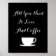 TOUT CE DONT VOUS AVEZ BESOIN, C'EST UNE affiche murale AMOUREUSE ET CAFÉ. Poster tendance noir et blanc avec une drôle de citation d'inspiration. Stylisme de calligraphie script avec logo de tasse. Décorations mignonnes design pour café, magasin, café, café, restaurant, cuisine, bureau etc. Décor sur mesure pour les amateurs de café et les accros de caféine.