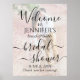 Bienvenue aux invités à une célébration élégante de shower de mariage avec une affiche personnalisée sur mesure avec superposition de photo de 45x60 cm. L'image et tout le texte sont simples à personnaliser. Le thème de fête "brunch & bubbly" peut être facilement supprimé ou changé en une autre idée telle que backyard bliss, garden tea party, french boho chic, Miss to Mrs, Paris romance, etc. Le design moderne minimaliste de superposition noir et blanc présente une image de votre choix, un lettrage calligraphique de style manuscrit chic et une typographie vintage inspirée de l'art déco. Ce panneau de bienvenue pour la fête de mariage est un moyen élégant de partager une photo de fiançailles dans le cadre de la décoration de votre jour spécial. Félicitations à la mariée !