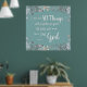 Poster avec typographie blanche en détresse sur arrière - plan aqua texturé entouré de fleurs d'aquarelle, avec vers bien connu de Romains 8:28, "... Toutes les choses travaillent ensemble pour le bien de ceux qui aiment Dieu..."