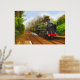 Une locomotive puissante se déverse dans une station de campagne pittoresque, gonflant de la fumée et de la vapeur tandis qu'elle passe devant la plate-forme rurale sans passagers pour descendre ou prendre.