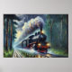 Train à vapeur dans la Rainy Forest at Night - Choisissez la taille de l'affiche que vous voulez.