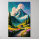 Cette oeuvre d'art à couper le souffle rend la sérénité d'un cabine alpin isolé niché au milieu de prairies verdoyantes et de fleurs sauvages colorés. Un sentier sinueux mène à la maison confortable, tandis que des pins dominants se dressent sur le fond d'une majestueuse montagne enneigée. Des nuages fluides baignent le ciel dans de doux pastels, ajoutant une chaleur à l'atmosphère croustillante. La scène évoque un profond sentiment de paix, d'aventure et de beauté de la nature, invitant le spectateur à flâner et à explorer ce paisible paradis de montagne