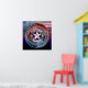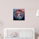 Cette conception passionnante est marquée par la devise : Travailler dur à jouer dur aux États-Unis, inscrit sur des anneaux métalliques survolant un drapeau américain dressé contre un arrière - plan représentant le "dernier éclat du crépuscule". Un grand cadeau ou une grande acquisition pour toute personne inspirée par l'audacieux esprit d'autosuffisance et d'exception de l'Amérique.
