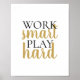 Décorez votre bureau avec cette affiche qui présente le travail jeu intelligent dactylographie citation motivationnelle en noir et or.