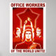 Affiche humoristique de propagande syndicale faisant la promotion des "employés de bureau du monde, unissez-vous !" Avec des employés de bureau qui tiennent les agrafes haut, en révolte. Imprimés, affiches, cartes, cadeaux, t-shirts.
