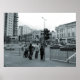 Des gens attendent de traverser la route à Dumfries Place Cardiff, Pays de Galles. UK. 2007 en noir et blanc, bien que l'image soit très légèrement colorée pour donner un ton cool.