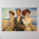 Peinture à l'huile abstraite des années 1940 de trois personnes polyamores marchant le long d'une plage par jour ensoleillé. Il s'agit d'un autre design 100% original Snuggle Hamster.