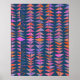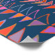 Un motif géométrique peint amusant de triangles dans des tons de bleu profond et riche, associé à un arc-en-ciel de couleur.