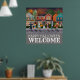 Ce signe de bienvenue d'Halloween est parfait pour quiconque planifie une fête d'Halloween. Le design comporte une scène artistique d'Halloween et est complété par une formulation éditable correspondante. Ce design amusant peut être personnalisé pour convenir à votre événement spécial et sera le décor parfait pour toute fête d'Halloween, y compris les baby showers, fêtes d'anniversaire et bien plus encore.