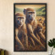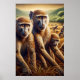 Trois singes énergiques cavorent joyeusement dans un champ verdoyant, leurs antiquités animées capturées dans un tableau vibrant éclatant de couleur et de mouvement.