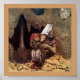 Image colorée d'une mère troll tenant son enfant avec une grotte et un feu de camp dans l'arrière - plan. Illustration de l'artiste suédois John Bauer. Trollunge pa Langtur