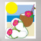 Poster Tropical Beach Vacation Coconut Flowers Flip Flops